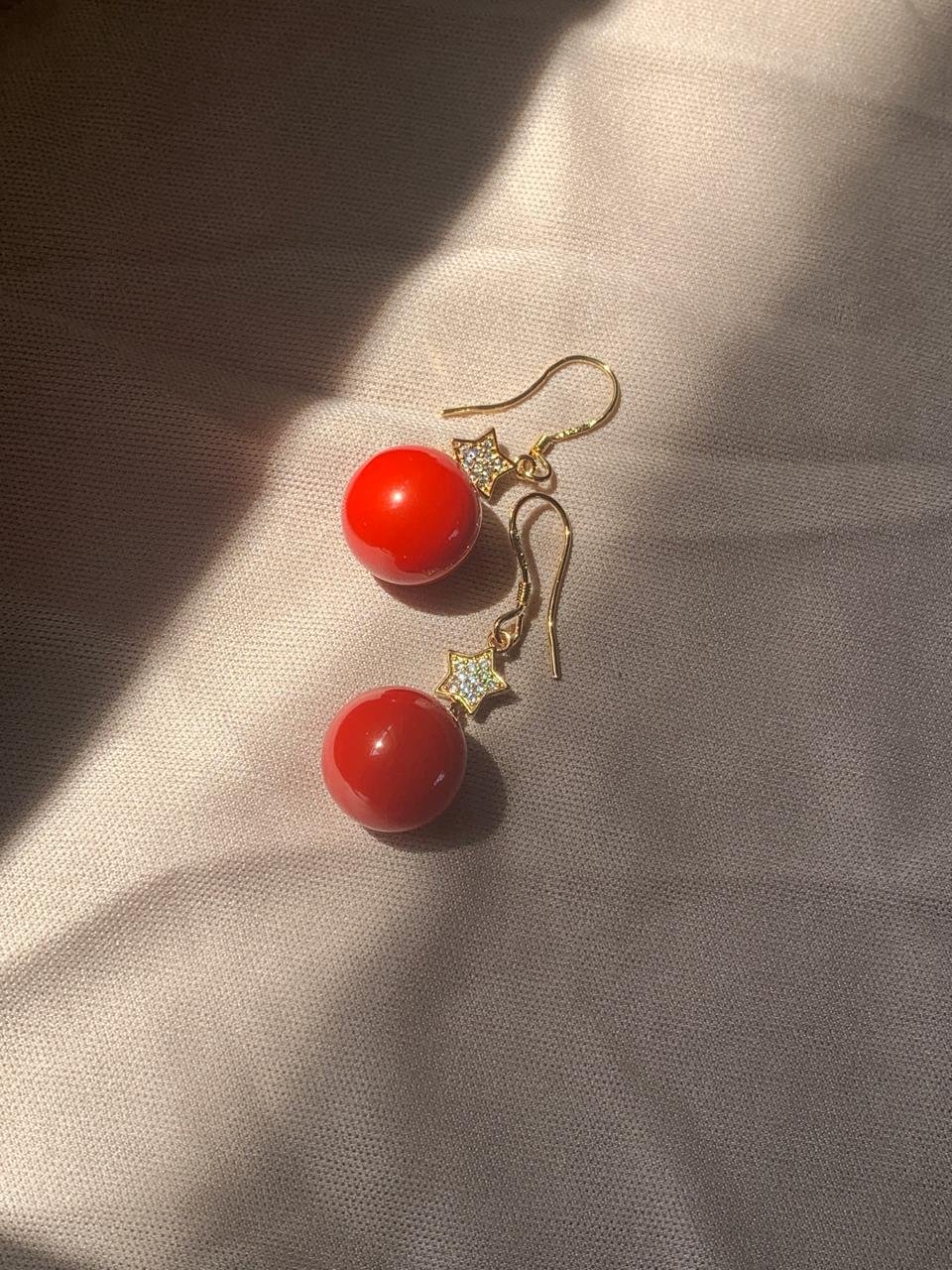 Elevate your style with these elegant earrings, featuring rich red pearls accented with delicate sparkling stones. The gold-plated finish adds a touch of luxury, making them perfect for both special occasions and everyday elegance