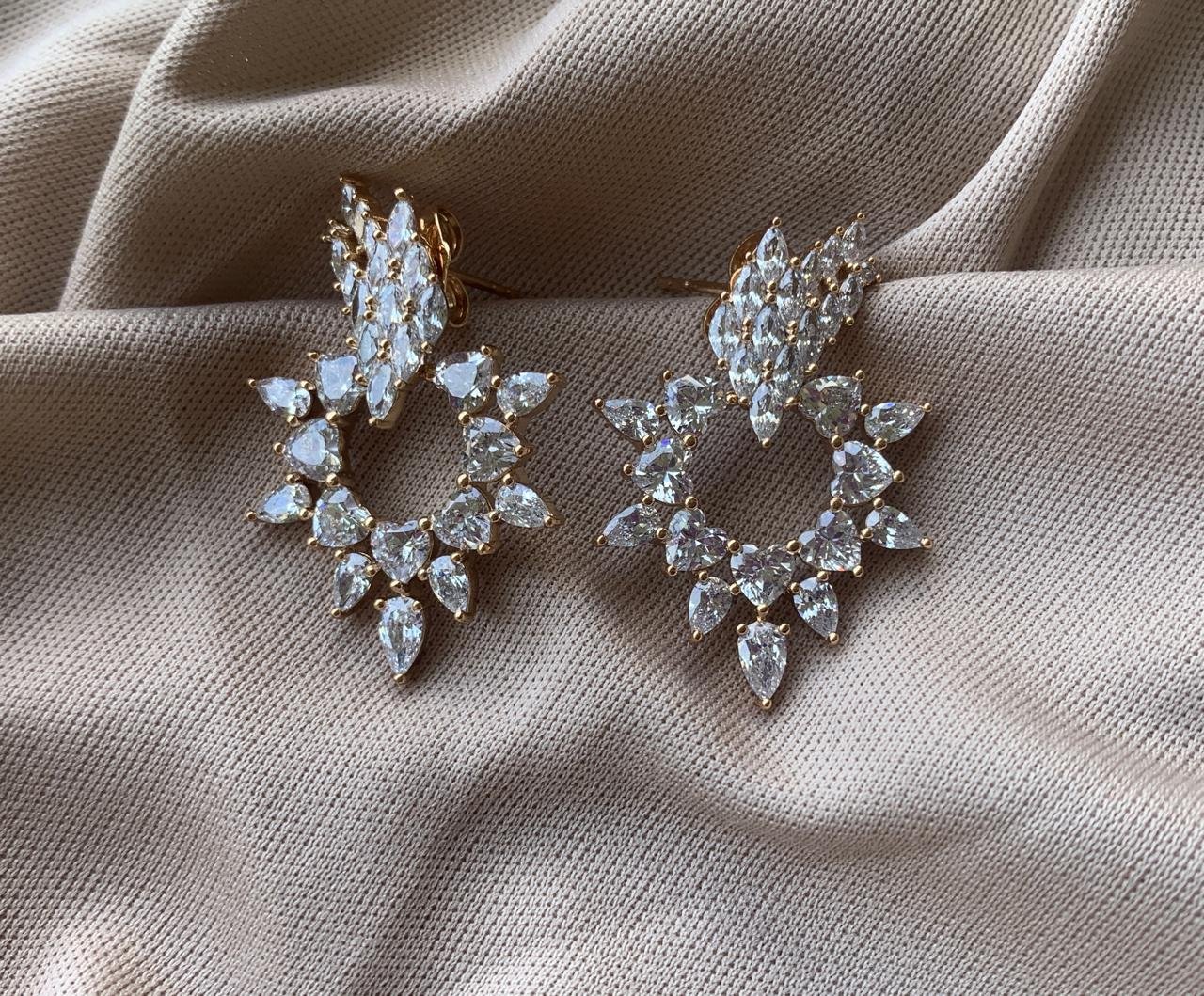 Add a touch of brilliance to your look with these crystal stone earrings, crafted in a dynamic design that catches the light from every angle. Their sleek arrangement creates movement and sparkle, making them perfect for both everyday elegance and statement style