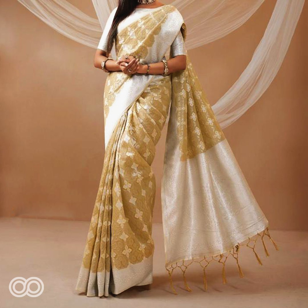 Introducing the epitome of elegance and luxury: the Woodloom Woven Saree White Touch Edition. Crafted with the utmost precision and attention to detail, this premium saree embodies sophistication and grace, perfect for the modern woman who values both tradition and style.